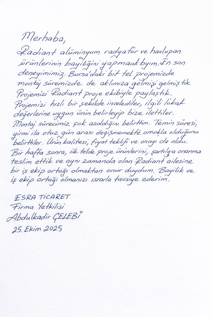Radian Thermo, alüminyum radyatörler, alüminyum havlupanlar, çelik havlupanlar, çelik radyatörler ve vanalar gibi ısıtma ürünleri satıyor.